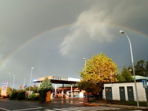 Durante el tramo montañoso solamente pisamos pistas forestales entre pinares, eucaliptos y alguna que otra carballeira hasta que descendemos a la urbana Redondela donde nos detenemos para almorzar. Atravesamos la villa escapando e la N 552 para adentrarnos de nuevo en el monte en un continuo ascenso hasta regresar a Amoedo. La única población que encontramos en nuestro regreso en la pequeña aldea de Quintela, no lejos de Redondela. A partir de ahí toca subir y subir hasta cerrar el bucle.