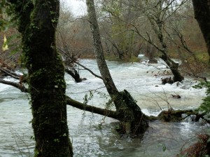 Tras un breve paseo por el centro de Mondariz Balneario, de alto valor histórico y monumental, bajamos a la la orilla del Tea para emprender el regreso. Las recientes crecidas del río, que aún va alto, han dejado su huella en la senda de pescadores en forma de grandes socavones y numerosos arbolitos y arbustos aplastados por la corriente. Seguramente que hace unos días habrá sido imposible caminar por esta zona inundada.