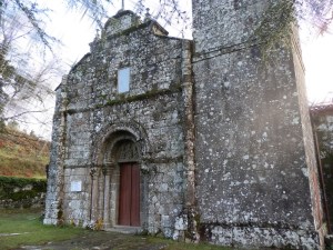 Santa Mariña de As Fragas es una parroquia del municipio de Campo Lameiro desde cuya monumental iglesia parte el recorrido que hicimos en este lunes. Conserva su fachada románica del S.XII en cuyo tímpano está representada una curiosa escena con tres personajes: un obispo bendiciendo entre un cura con un libro y otro con una cruz.