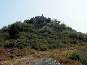 Iniciamos la ruta de este lunes en el Mirador de O Viso, carretera PO-340 que va de Gondomar a Tui. En realidad serán dos rutas unidas por un corto tramo común. Hacia el oeste parte la que nos lleva al Monte Tetón, interesante enclave arqueológico de los que los que abundan en Galicia, compuesto por dos estaciones: la de Real Seco y la de Portaxes. Entre ambas se alza el pico de forma cónica cuyo nombre revela lo que su forma sugiere.