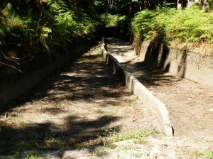 Dejando la ermita a nuestras espaldas atravesamos el río y continuamos por su margen derecha, caminando por la acequia que construida hace muchos años por la veterana Sociedad Eléctrica de Tui que es la que explota sus aguas para producir electricidad cuando hay caudal, lo cual no es el caso en estas fechas.