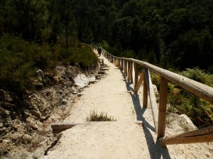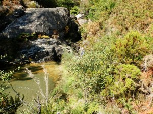 Hemos iniciado nuestra caminata en O Retiro, un poco después de A Cañiza, mirando hacia Ourense, con un comienzo un tanto decepcionante, pues los primeros kilómetros discurren sobre asfalto puro y duro aunque poco antes de llegar a Tourón ya entramos en las típicas corredoiras entre carballeiras, algo de monte raso y después de Tourón, ya en sus famosas «fervenzas», ahora casi secas debido a la larga temporada sin lluvias, nos damos un saludable baño en una de las pozas que abundan en el curso del río Cerves al que ya habíamos visto algo más pletórico en marzo del año pasado.
