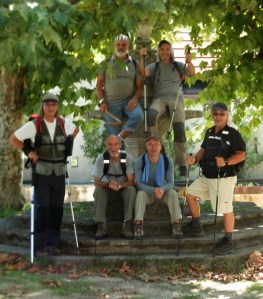 Hemos observado, entre el asombro y la sorpresa, que en los siete días que separan nuestra caminata de hoy de la del lunes pasado la enorme extensión de viñedos repletos de uvas hace una semana ha sido vendimiada casi en su totalidad. Apenas si quedaban aquí y allá unos cuantos vendimiadores acarreando los últimos racimos.