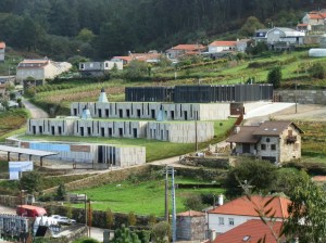 Saliendo del lugar de Valboa atravesamos parte del Castrove para bajar, siguiendo la corriente del río Armenteira, hasta el lugar del mismo nombre archiconocido en nuestro país por su monasterio y su leyenda de Don Ero. Una vez más hacemos la inexcusable visita al cenobio no sin antes sorprendernos con la construcción, prácticamente terminada, de una Pousada do Salnés, establecimiento hotelero más parecido a un cenotafio o tanatorio pues más se asemeja a un monumento funerario que a un establecimiento de ese gremio que además, según nuestro criterio, desentona con su entorno. Algo más de dos millones y medio de euros se ha gastado el FEDER y la Diputación para dotar a la rural Armenteira con semejante adefesio.