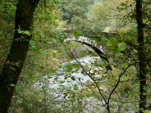Iniciamos la marcha en lo que queda del Monasterio de Carboeiro, ahora restaurado, situado en un bellísimo paraje a las orillas del Deza para llegar entre verdes praderas, pues son estas tierras de gran actividad ganadera y frondosos bosques de castaños, robles y alcornoques hasta el mirador de la fervenza en la cabecera de la cascada y desde donde se puede bajar hasta el fondo la pista que conduce al pequeño parque situado en la base. Desde allí, un estrecho y accidentado sendero nos lleva hasta el puente de hierro que atraviesa el río Deza y un poco más adelante, llegados a los lindes de Merza, torcemos a la derecha para detenernos en el lugar de Reboredo en donde se encuentra el restaurante O Refuxio. Tras una agradable comida y después de animada sobremesa emprendemos el regreso hacia el punto de partida que no está a más de 3 Km. vadeando el río a través del viejo Ponte do Demo (s. X) muy cerca ya del monasterio.