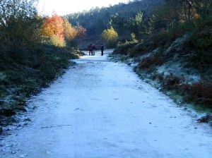 Desde el punto de partida hasta San Esteban de Negros en los aledaños de Redondela el camino, blanco por la helada en las primera horas de la mañana, es como un largo balcón desde el que la vista se recrea con la contemplación de la bellísima ría en toda su extensión desde las islas Cíes hasta la ensenada de San Simón limitada por el puente de Rande, una notable obra de ingeniería que marca la acción del hombre sobre la naturaleza al unir dos orillas que hasta hace pocos años permanecieron , desde el origen de los tiempos, infranqueables para el tráfico terrestre.