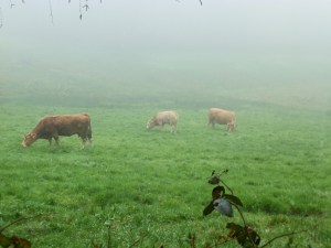 Ya en pleno descenso, pasando por pequeños núcleos de población como A Pallota y Portela, casi siempre entre verdes prados en los que se acumulan las balas de hierba para el ganado, regresamos al punto de partida a tiempo aún para llegar con día a nuestros puntos de origen.