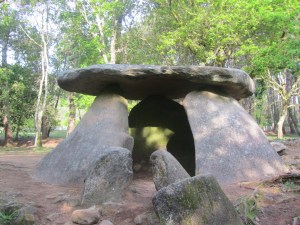 Comienza la  andaina cerca de Oleiros para toparse a los pocos kilómetros con el Dolmen de Axeitos, el Partenón del Megalítico, como lo llamó García Bayón, cronista oficial que fue del municipio. Nada menos que seis mil años lleva allí este sepulcro colectivo.