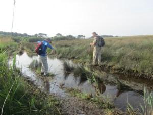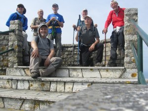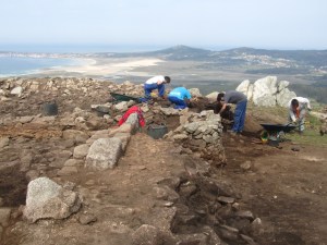Sigue la ruta por el humedal del Parque Natural de Corrubedo de cuyas famosas dunas no se encuentra noticia en las referencias que tengo de la jornada por lo que presumo que no pasaron por allí. Con las lluvias aún recientes no queda más remedio que chapotear por la junquera del Complejo Húmedo hasta encontrar de nuevo tierra firme y, ya cuesta arriba, alcanzar O Monte da Cidá, un enclave castrexo en el que arqueólogos y auxiliares trabajan para restaurar lo que queda del antiguo castro.