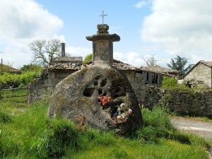 Seguimos nuestra caminata pasando por pequeños núcleos de población como Liñares, Nogueira y Remesal, siempre cuesta arriba hasta alcanzar la mencionada capital del municipio, Luíntra y allí, en el restaurante O Afiador, nos sentamos un par de horas para llevarnos al coleto una taza de caldo y un plato de merluza a la gallega que nos deja preparados para continuar durante media docena de kilómetros más el camino hasta el lugar de Rubiacós, inicio y final de la ruta.