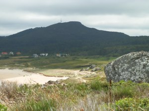 Nosotros hemos comenzado la ruta en el lugar de Olveira, cerca del monte Tahume al que que hemos subido para admirar la espléndida panorámica que se contempla desde allí con la playa de Espiñerido en primer plano y el Faro de Corrubedo en la lejanía.