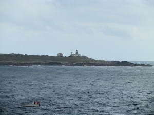 Bajamos del Tahume a la costa la cual bordeamos durante toda la mañana recorriendo los hermosos y largos arenales que se suceden hasta que alcanzamos el Faro de Corrubedo. Playas como la ya citada de Espiñeirido y de Baileiros separadas por salientes rocosos en los que lo percebeiros luchan a brazo partido con el oleaje para arrancarles el preciado molusco. El Faro, que con la Gran Duna es otro de los referentes de Corrubedo, fue testigo de bastantes naufragios y accidentes en esta costa de bajos peligrosos y grandes temporales agravada dicha circunstancia por el hecho de que se confundía su luz con la del de Sálvora.