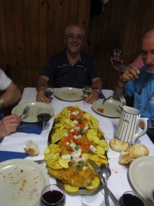 Hacemos un alto en la villa para degustar en A Cova da Onça un espléndido bacalhao que colmó nuestras hambres sin necesidad de aperitivos previos y postreros remates, acompañado de los vinos verdes y maduros que en Portugal nunca defraudan.
