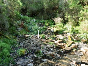 Llegados al lugar de Valdemiñotos, bajamos al río Tamuxe bordeándolo por su margen derecha a través de fincas y tierras de labor hasta el lugar en que se encuentra el puente que nos traslada a su orilla izquierda al Muiño das Aceñas que es de donde parte PRG 112 o Sendero de pescadores Miño-Tamuxe que, a lo largo de 6 km., recorre el estuario de estos dos ríos uniéndose en Eiras a la Senda Fortaleza, de casi 3 Km., que continúa hasta el fuerte de San Lourenzo en Goián.