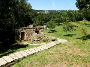 Una serie de muiños perfectamente restaurados a lo largo del río entre fincas de labor forman un espléndido conjunto de rústica belleza cuyo sendero nos lleva, entre la tupida floresta, a la orilla del embalse que durante muchos años abasteció de agua  a la ciudad de Vigo.