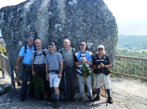 Por carreiros equinos bordeados de tojos atravesamos estas solitarias alturas doblando la cima para descender por la ladera norte hacia la parroquia de Estacas. Allí, en Casa Chalán, nos espera un merecido yantar a base de jabalí con arroz y otras viandas y dulces que acompañados de un buen tinto de Barrantes nos dejan en condiciones de emprender el regreso, otra vez entre fincas, fragas, ríos, regatos y riachuelos, puentes pontellas y pontillones, para llegar bajo un chaparrón que nos sorprende en los postreros minutos sin que nos dé tiempo a mojarnos demasiado antes de alcanzar el punto de partida.