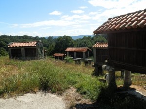 Ya en plena sierra de O Suído sigue la marcha en continua ascensión hasta encontrarnos con una extensa parcela toda cerrada de cachote monte abajo terminada en dos puntas. En la más baja el muro se cierra dejando una pequeña abertura que da a un profundo foso circular: O foxo do lobo, una trampa para reducirlos en aquellos tiempos en que eran un peligro para el ganado y se organizaban batidas para conducirlos al foxo y atraparlos allí. En la otra punta existe un chozo, refugio de pastores típico de esta sierra aunque es la primera vez que lo vemos formando parte de un foxo.