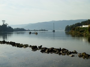 Dejamos la Villa de los viaductos siguiendo la corriente del río Alvedosa que nos lleva por una larga pasarela de madera hasta su desembocadura en la ensenada de San Simón, el bellísimo cuadro que se contempla desde el lugar de A Portela en donde comienza la larga ascensión hasta el lugar de Cedeira en cuyas cercanías habíamos iniciado la ruta de este lunes.
