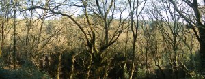 Desde las alturas de Aranza descendemos hasta el puente que salva el río Pequeno para ascender de nuevo, en pronunciada pendiente, hasta la ermita de A Virxe da Pena de Francia desde donde se domina todo el valle aún envuelto a esta hora en la niebla sutil de esta mañana en la que estrenamos el invierno.
