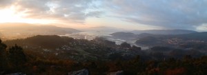 Para el recorrido de este lunes hemos enlazado tres  rutas, la del PR G107 o Pedra Miranda con la de Chan do Vilar y la de los Muiños de Vilaboa.  El PRG 107 parte del Alto da Lapa, en Vilaboa hasta otro monte en donde se encuentra A Pedra Miranda con su cueva que sirve de refugio en caso de necesidad y muy cerca de otra elevación que constituye un magnífico mirador de la ensenada de San Simón.