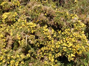 El tojo que cubre la mayor parte de estos montes y las mimosas lucen sus flores amarillas y brillantes como un anticipo de la inminente primavera.