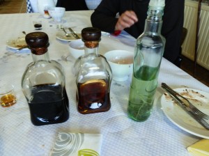 Entre chanzas y jolgorios transcurre la cuchipanda. Llegan los postres a base de requesón y filloas con miel, tarta de chocolate y pudding, siempre presente el blanco vino del Condado seguido por licores de café, naranja y ruda. Café e infusiones, cánticos y desafinos para llegar a casi a las cinco de la tarde con lo que urge abandonar los manteles, cargar mochilas, izar bastones y reemprender la marcha no sin antes celebrar con los mesoneros  la calidad y excelencia de los manjares que han preparado para nosotros.