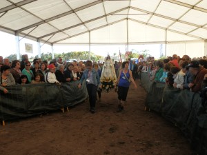 A continuación se celebra la misa solemne presidida por el Sr. Obispo y a continuación los romeros se dispersan entre la infinidad de puestos y chiringuitos en los que se vende de todo, especialmente comida a base de pulpo, churrasco y empanada.