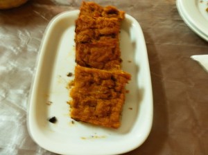 Allí nos espera una empanada de «millo» de las que casi no se ven y un cabrito al horno que colma todas nuestras expectativas por su sabor y finura. A tan maravilloso bocado nos lanzamos todos con premura menos nuestro amigo Moncho que, en un ejercicio de férrea voluntad, obedece a su monacal dieta y se contenta con la reducida ración de la que da cuenta con resignada felicidad.