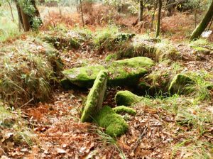 Son más de sesenta los  monumentos funerarios que nuestros antepasados  elevaron en estos lares hace más de 2.000 años. El primero, A Mámoa da Casa Moura, se encuentra a pocos metros del cementerio de Candeán, no lejos del Vigozoo que es en donde iniciamos esta ruta. Se ven numerosos devotos y familiares ajetreados entre las tumbas, limpíándolas y adornándolas con flores en recuerdos de sus muertos. No muy diferente de lo que hacían, hace poco más de  un par de milenios, aquellos que, moviendo grandes piedras, construían los dólmenes en los que enterraban a sus difuntos, amontonando tierra a su alrededor, formando un pequeño montículo en forma de mama, de ahí lo de mámoa, su nombre en Galicia.