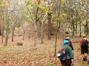 Muchos de ellos apenas si son reconocibles, pues la maleza los ha hecho casi invisibles, pero otros destacan claramente sobre la limpia superficie del pinar. Llama la atención la gran cantidad de estos túmulos que hay en estos montes. O había mucha población en aquella época en esta zona o alguna epidemia fue la causa de tantas tumbas y tan juntas.