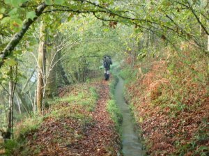 Atravesamos la pontella que nos lleva por su margen derecha hasta su encuentro con el Tea continuando por una larga levada, una rústica acequia que antiguamente llevaba el agua a los muiños.