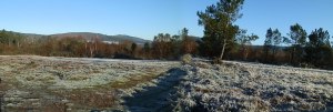 La mañana comenzó fría, con los caminos y campos cubiertos por la escarcha que hacía sonar nuestros pasos como si fuésemos pisando huevos. La zona está salpicada de pequeños núcleos de población, viejas aldeas un poco perdidas en la soledad y el silencio. En casi todas se encuentran viejas construcciones, ejemplares genuinos de la antigua arquitectura rural, algunas de ellas en ruinas o abandonadas.