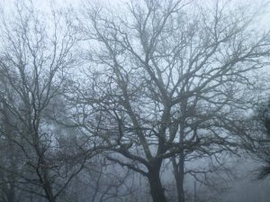 Afuera sopla el viento barriendo en rachas de lluvia el negro pavimento de la N 120 que atravesamos para adentramos en los montes de Cumiar bajo una espesa niebla que envuelve el paisaje en un halo de magia, misterio y silencio solamente roto por el rumor del viento y el repiqueteo de la lluvia hasta que, insinuada entre la bruma, aparece la iglesia parroquial de Mouriscados a unos metros del punto en que habíamos iniciado la ruta de este lunes.