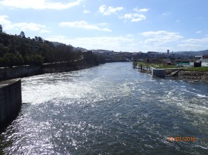 Un poco más abajo, cruzamos el Camino Sanabrés en dirección a Silleda, ya en el barrio de Cudeiro y su imponente pazo, para bajar por un estrecho sendero al río Miño, atravesado por los monstruosos muros de la presa de Velle que deforman el río y su entorno, no lejos del impresionante puente de piedra, A Ponte Vella, un hermoso viaducto construido sobre los cimientos romanos de hace más de dos milenios.