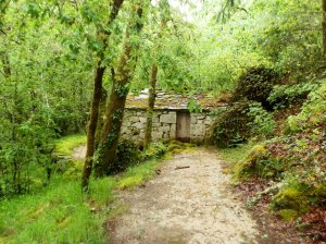 En nuestro recorrido hemos hallado varias de estas agrupaciones en sitios como A Aldea, Barroso y As Chariñas, entidades de población salpicadas a lo largo de los ríos Valderías y Cubelo. Una característica interesante de los hórreos de esta comarca es que tienen la cubierta de piedra lo cual garantiza una larga vida a estas construcciones. También los hemos visto así en el municipio pontevedrés de Cotobade.