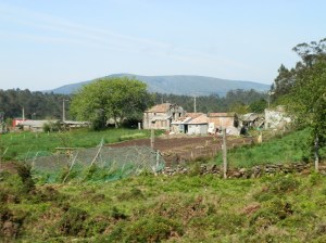 Por pistas forestales y algún que otro carreiriño abandonamos el monte para descender al hermoso y feraz valle de Tebra. Allí, en la amplia plaza de la iglesia, nos espera el Restaurante Las Colinas con un menú a base de marisco, pescado y carne, rematado con apetitosos postres que por un módico precio nos deja tan satisfechos y animados que acometemos los 7 Km. que nos quedan de caminata, siempre monte arriba, como si en vez del final fuese el comienzo de la jornada.