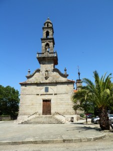 Seguimos en continuo y suave descenso hacia Portela do Foxo, atravesando la hermosa Fraga de Oredo para llegar al lugar de Bustelos con su encantadora capilla de San Caetano, seguir hasta Ventín, ya a una carreiriña de can del centro urbano de Fornelos de Montes. Allí, al lado de su monumental iglesia, casi escondida en un recuncho de la plaza, se encuentra Casa Nogarola donde nos espera nuestro entrañable colega Juan, quien aunque desplazado de nuestras andanzas por una misteriosa dolencia que le impide posar su pie como es debido, celebra con nosotros su cumpleaños, joven y animoso como si anduviese por los cuarenta. Después de darle un repaso al rabo de vaca, fino y escurridizo, especialidad de casa, sopla las velas nuestro amigo acompañado del canto ritual con el que le deseamos que cumpla mil primaveras más.