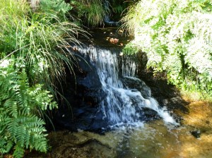 Cuando en el pasado marzo anduvimos por estos parajes, un poco más al norte de la ruta de este lunes, la fervenza do Cardarnoxo era un impresionante chorro de agua y espuma que formaba el regato Cubelo poco antes de entregar sus aguas al Coroño. Este lunes nos hemos encontrado con que los regatos, ríos y cascadas que jalonan el itinerario de esta calurosa jornada de comienzos de setiembre son un pálido reflejo de aquella opulencia que mostraban gracias a las copiosas lluvias de la estación.