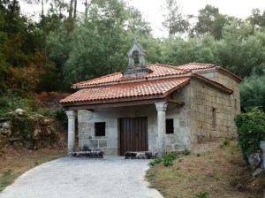 Dejando atrás el monasterio seguimos nuestra andadura entre pinares y carballeiras, fincas de labradío y cómo no, viñedos y más viñedos. Iglesias y ermitas abunda en esta zona. Las de San Roque, San Miguel, Virgen del Socorro, San Lorenzo, Nª Señora del Carmen, San Pedro y alguna más jalonan nuestro recorrido así como pazos y casas solariegas como el del Riobó y la Gran Casa de Lentille.