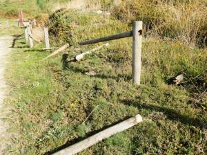 Un poco más y tocamos la valla que rodea el Área arqueológica de Tourón, uno de los conjuntos de arte rupestre más importantes de Galicia aunque no parece que esa sea la consideración en que lo tienen los responsables de su cuidado, pues está bastante deteriorado aunque en esta ocasión hemos observado que han desbrozado los caminos de acceso a las estaciones pero sin preocuparse de retirar la hierba seca que cubre algunas de las lajas ocultando sus insculturas.