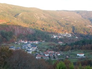 Dejando atrás el último que es el de Mangüeiro, bajamos hasta el lugar del mismo nombre vecino de Por de Lapa que es en donde se encuentra el Bar Chaira en donde nos tienen preparada la pitanza, exclusiva para el grupo, a base de frijoles y pollo con arroz. Lo de los frijoles se debe a que en esta comarca abundan los emigrantes retornados de Méjico, algunos famosos y acaudalados, con imponentes mansiones de granito que salpican estas aldeas. También llaman la atención los cobertizos amueblados con largas mesas de piedra o madera acondicionados para grandes reuniones familiares y amigos durante las fiestas locales como la del Rosario aquí, en Mangüeiro.