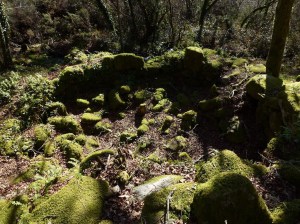Como no hay mucho que ver desde allí seguimos monte abajo topándonos a los pocos metros con A Pedra das Teixiñas una roca con las insculturas típicas a base de espirales y cazoletas que allí dejaron nuestros antepasados del neolítico.