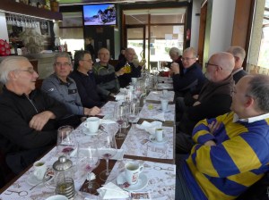 Ahora toca bajar hasta llegar a Pazos de Borbén donde nos espera el restaurante Cernadas, ya conocido por los muchachos de Los Lunes al Sol. Llenan radiadores y perchas con con la mojada vestimenta y se sientan en la amplia mesa que les han preparado para disfrutar de una agradable pitanza.