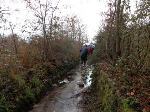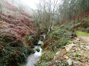 Toca regresar y así lo hacemos bajando por las veigas que rodean Pazos sin que la lluvia nos importune hasta que recuperamos el tramo incial desde la levada de Casqueiros donde un fuerte chaparrón con viento nos agua la llegada al punto de inicio de esta lluviosa pero agradable jornada.