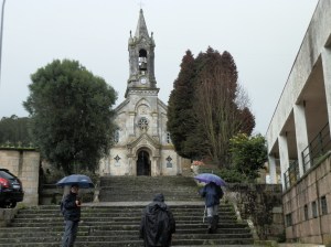 Llegados al lugar de Sequeiros en cuya capilla de San Sebastián encontramos refugio para el refrigerio de media mañana, comenzamos la dura subida al referido promontorio bien pertrechados de paraguas y chubasqueros.