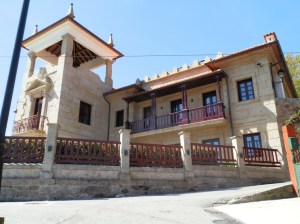 Ya en plena bajada damos con el río Oitavén por cuya frondosa ribera nos dirigimos a Gaxate en cuyo Café Bar nos detenemos para lo que toca a estas horas que es sentarse a comer. Después de dar cuenta de su merluza frita con ensalada y sus callos con garbanzos regados con tintorros como Caiño y Barrantes emprendemos el regreso al punto de partida Gaxate arriba, lugar éste de indianos, emigrantes que retornaron a sus orígenes con fortuna como se deduce de las impresionantes mansiones y casonas que nos encontramos a nuestro paso.