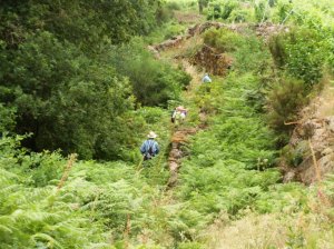 Menos mal que una buena parte del recorrido de vuelta discurre por estrechos senderos bajo la sombra de las mimosas cuyo luminoso amarillo de hace unas semanas se ha tornado en el intenso verde de su frondoso ramaje que nos protege de los rigores del astro implacable.