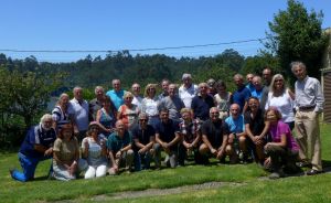 Sus amigos y compañeros de tantas andanzas a lo largo de estos años nos despedimos de él con una caminata por los montes de Oia y de A Groba interrumpiendo la ruta a la hora de comer, como es costumbre de los chicos de Los Lunes al Sol, pero esta vez con una comida especial en nuestro restaurante estrella, Casa Paco, en los Altos de Torroña, en plena Serra da Groba, uno de los espacios más trillados y apreciados por los caminantes de estas tierras.