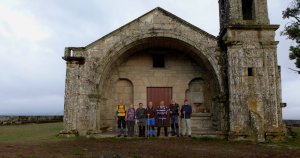 Descendemos, para axiña subir ao Marco do Viso e o Laxial. Baixamos pola ladeira norte, atravesamos o lugar de Moreira e, bordeando o potente valado do Castelo de Soutomaior, chegamos á igrexa parroquial, rica e de amplas dimensións, en estilo barroco. Alí repuxemos forzas co habitual nestes casos: alguna peza de froita e un iogur.