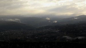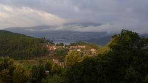 Iniciamos a ruta na ladeira suroeste da Peneda, na aldea de Saramagoso. Subimos á capela e admiramos unhas moi boas vistas da Ría de Vigo e do Val de Soutomaior, entre neboeiros e orballos.